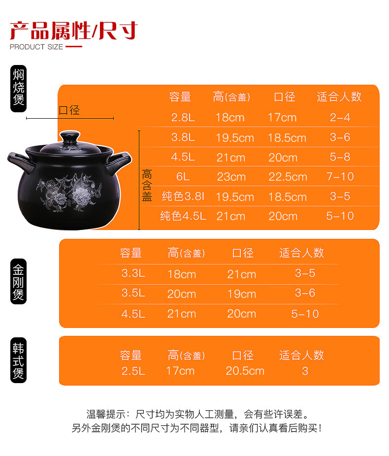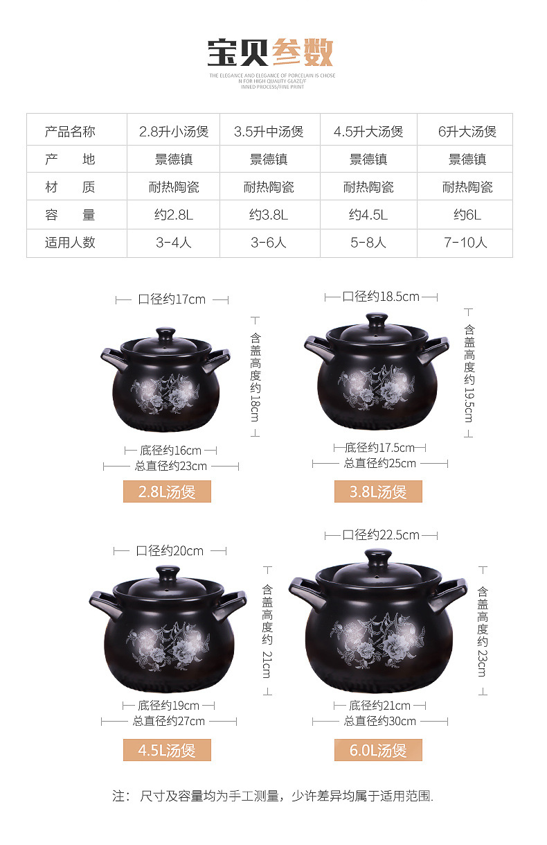 • 商品名称:景德镇陶瓷砂锅耐高温明火陶瓷煲汤锅 养生煲养生锅具(黑色)