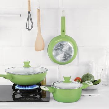 >  锅具组合无油烟不粘锅四件套炒锅汤锅平底锅电磁炉用(绿)
