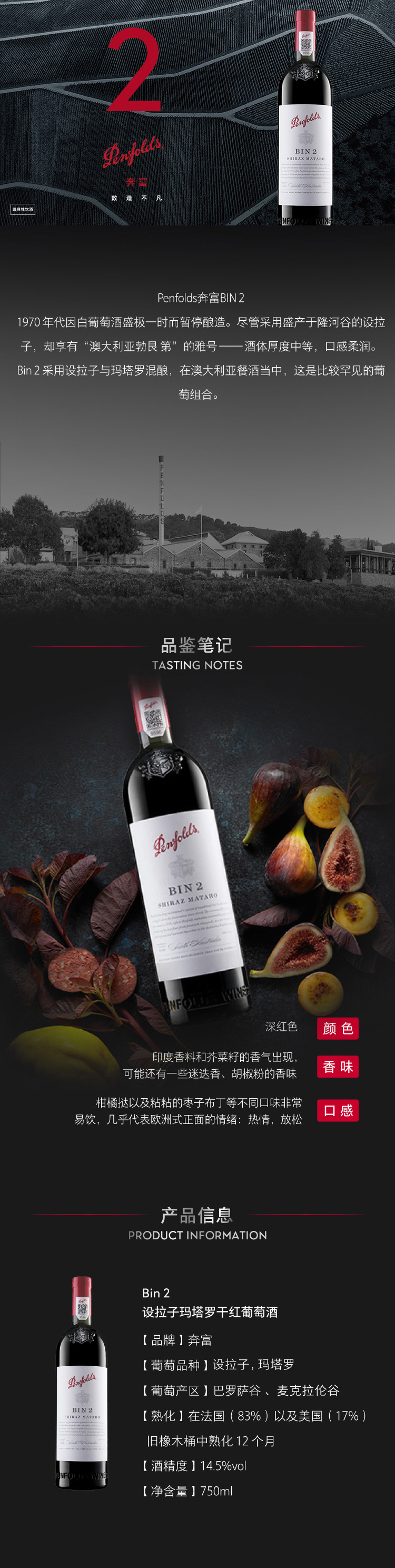 奔富Bin2设拉子玛塔罗干红葡萄酒进口红酒 750ml*6瓶 整箱装(规格4)(1)