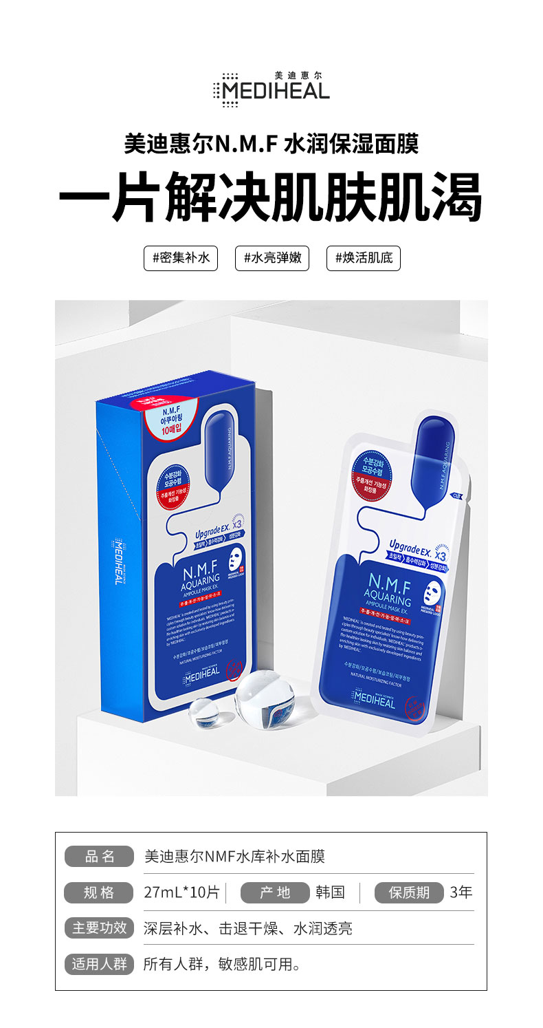 • 商品名称:韩国美迪惠尔经典水库面膜10片 补水女NMF保湿(15g)