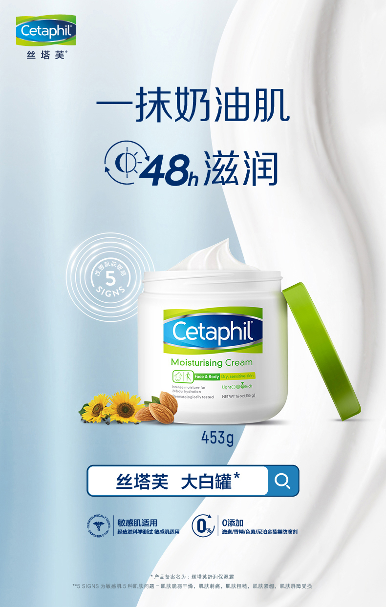 • 商品名称:Cetaphil/丝塔芙大白罐进口保湿面霜滋润敏感肌身体乳补水乳液(15g)