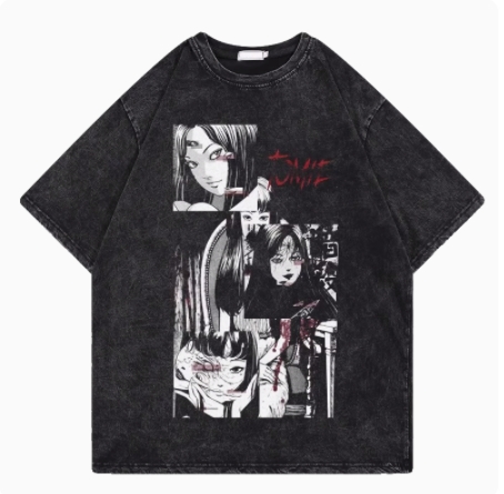 >  富江复古水洗做旧印花短袖t恤男潮牌高街嘻哈上衣